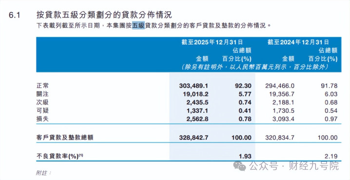 尽管九江银行2025年末不良贷款率较上年末下降0.26个百分点至1.93%,不良贷款总额63.35亿元,但这一数据仍显著高于上市城商行平均水平,资产质量压力并未真正缓解。