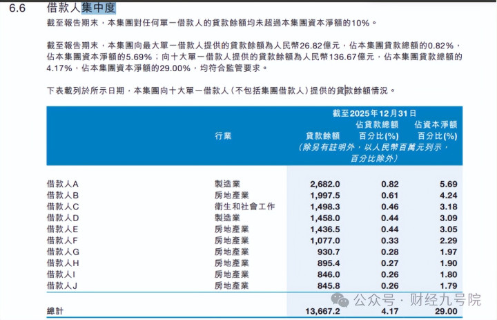 在九江银行公布的2025年前十大单一借款人中,有7家都是房地产行业,累计借款余额超80亿元,至2025年底,九江银行的房地产业贷款余额仍然高达210亿元.