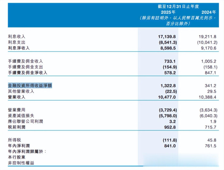 日前,九江银行(06190.HK)披露了2025年度业绩报告。表面上看,该行实现营业收入104.77亿元,同比增长0.85%;净利润8.41亿元,同比增长10.44%,“双增”格局延续。